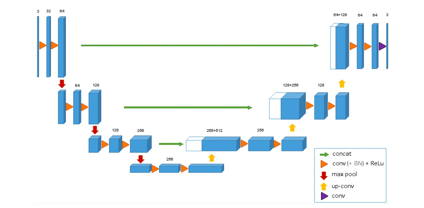 The U-net instead has a contracting path on the left side of the ‘U’ above that repeatedly downsamples, compressing the image into abstract features that capture the ‘what’. On the right side it has an expanding path that upsamples to reconstruct the ‘where’. The key upgrade here is skip connections, which copy high-resolution features from the contracting path directly into the matching stage of the expanding path, restoring the lost detail and producing much cleaner edges.