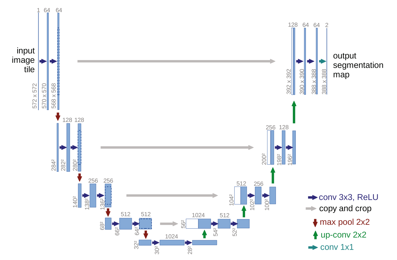 The U-Net architecture embodies elegant symmetry in its literal ‘U’ shape, directly visible in their original paper’s Figure 1 below.
