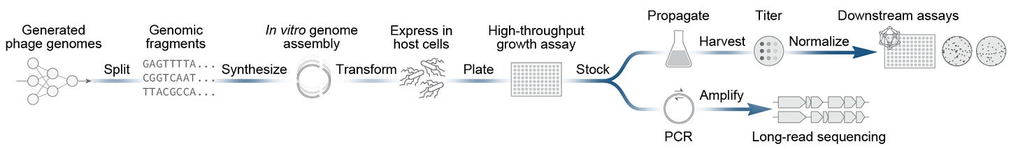 Researchers recently used Evo to generate hundreds of bacteriophage genomes based on the virus ΦX174, a 5.4 kb template with densely overlapping genes where there’s virtually no room for error. They moved 302 AI designs into the physical world, successfully synthesizing 285. After rebooting in E. coli, 16 viable phages emerged, with several even outcompeting the naturally existing ΦX174 in fitness assays.